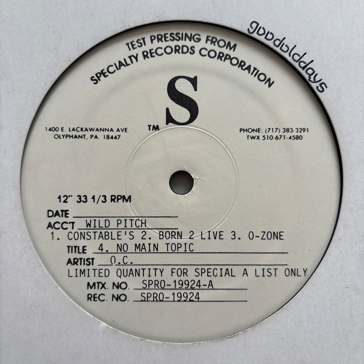 Rare Origina Test Press Only Double Side Special 12" EP