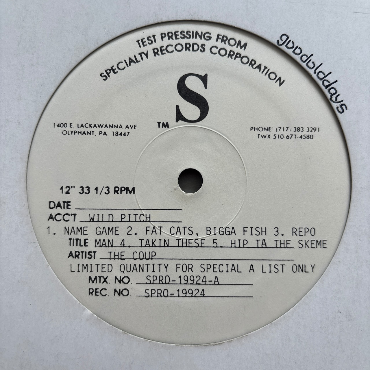 O.C.サイドはファースト・アルバムからの屈指の名曲4曲、オリジナルアルバムは1LPの為音質が低く使いにくい。しかし、こちらは片面4曲入りで溝が広く、しかもアルバム中人気曲の「O-ZONE」と「No Main Topic」を収録。The Coupサイドはセカンド・アルバム「Genocide & Juice」からの選びすぐり。